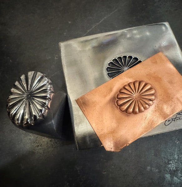 Handmade Traditional Repousse Southwestern M/F Concho Die. Hand Sculpted and from heat treated and tempered tool steel. Picture shows results after secondary processing to ensure ease of use.
