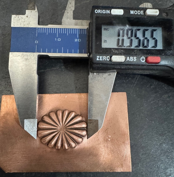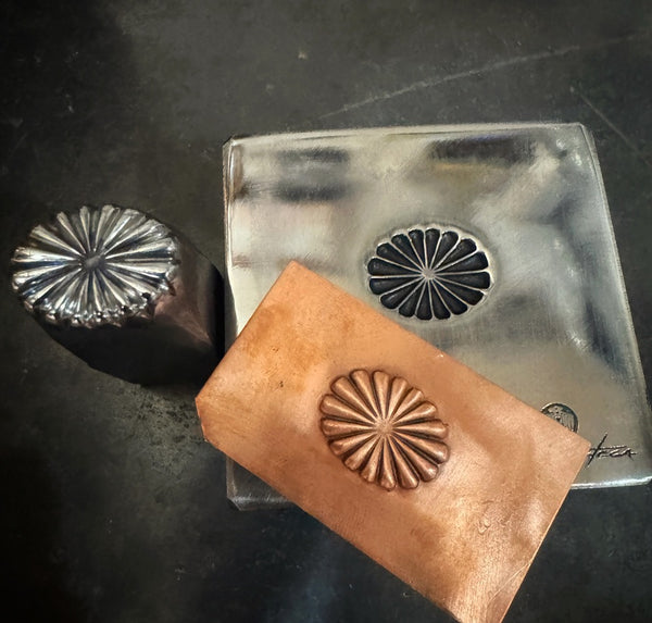 Handmade Traditional Repousse  Southwestern M/F Concho Die. Hand Sculpted and  from heat treated and tempered tool steel. Picture shows results after secondary processing to ensure ease of use.