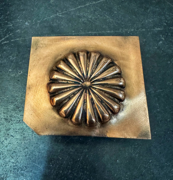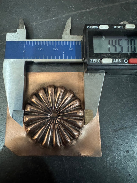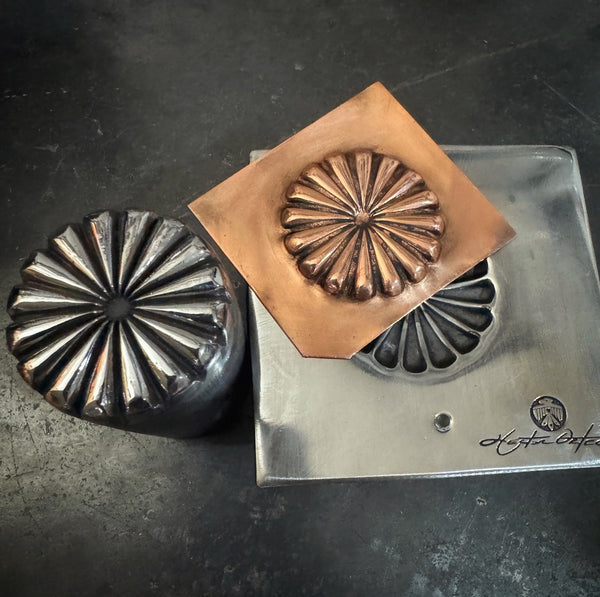 Handmade Traditional Repousse  Southwestern M/F Concho Die. Hand Sculpted and  from heat treated and tempered tool steel. Picture shows results after secondary processing to ensure ease of use.